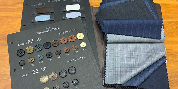 裏地、釦もお好みのものをお選び頂き、お客様のこだわりのディテールを決めていただけます。