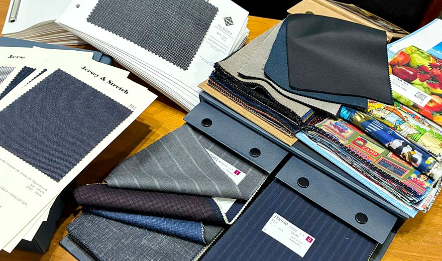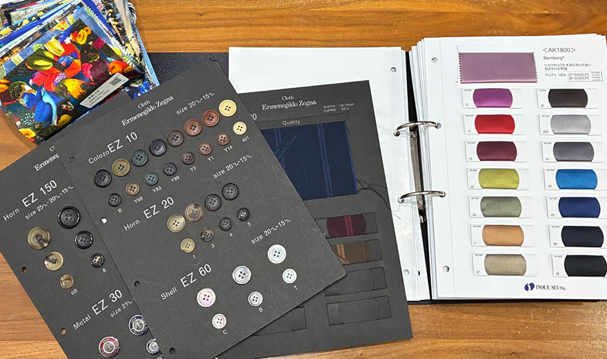 色、柄、など約1000種類以上の幅広い生地ブックからお好みの生地を選んで頂きます。