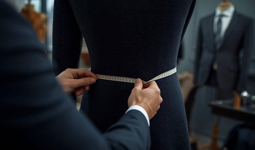 メジャーでお客様の全身の寸法を採寸させていただきます。