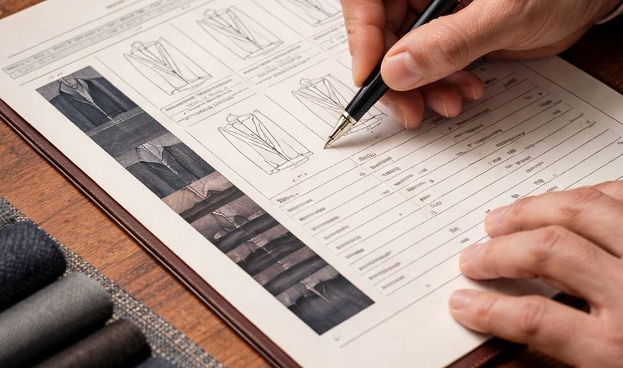 スーツ全体のシルエット、デザイン決めをしていきます。