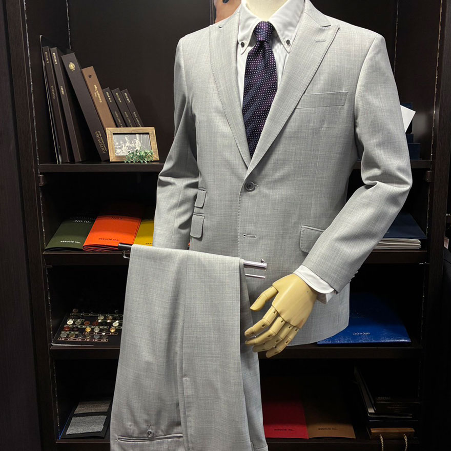 気になるところがあれば実際に店頭にあるスーツをご試着して頂くことも可能です。 -