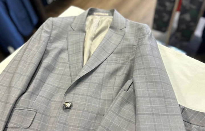 完成致しましたオーダースーツをご試着して頂き、全体のバランス、スーツのデザインをご確認して頂きます。