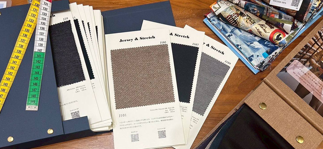 色、柄、など約1000種類以上の幅広い生地ブックからお好みの生地を選んで頂きます。